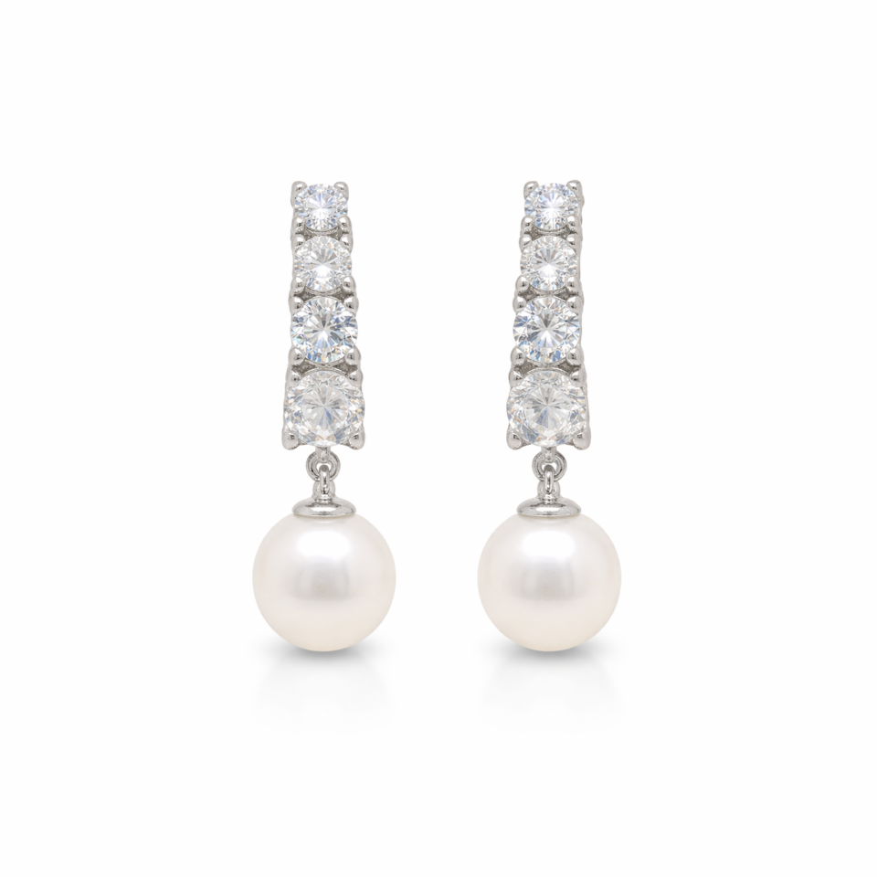 Aretes en plata italiana 925, delicadamente diseñados en estilo baguette y adornados con circones que reflejan la luz de manera sutil y elegante. Su acabado fino y moderno los convierte en una pieza sofisticada y atemporal.