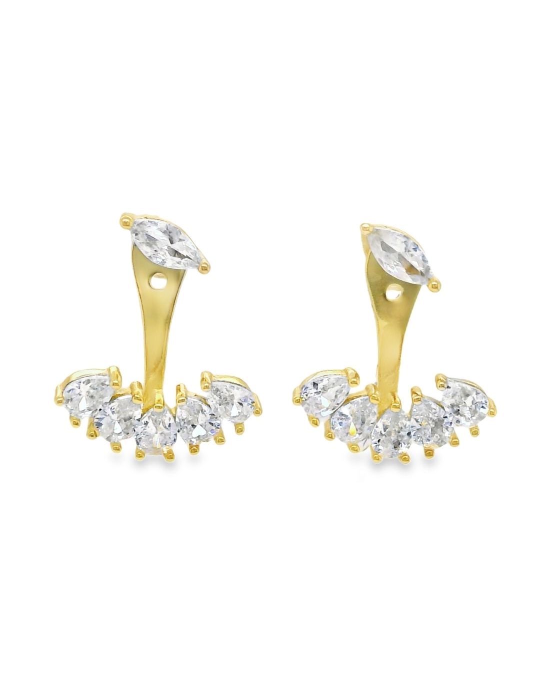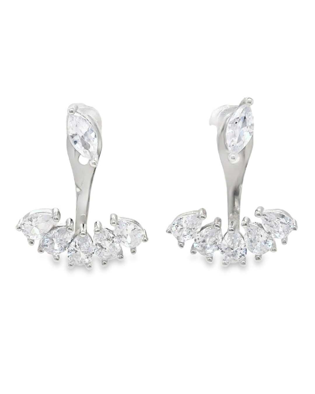 Estos sofisticados aretes tipo drop, elaborados en plata italiana 925 y también disponibles con baño de oro de 18k, destacan por su diseño delicado y femenino. Los circones en forma de hojas aportan un brillo sutil y elegante, mientras que su caída estilizada crea un efecto luminoso que realza el rostro con naturalidad y distinción. Una pieza refinada y atemporal, ideal para ocasiones especiales o para añadir un toque de elegancia a cualquier look.