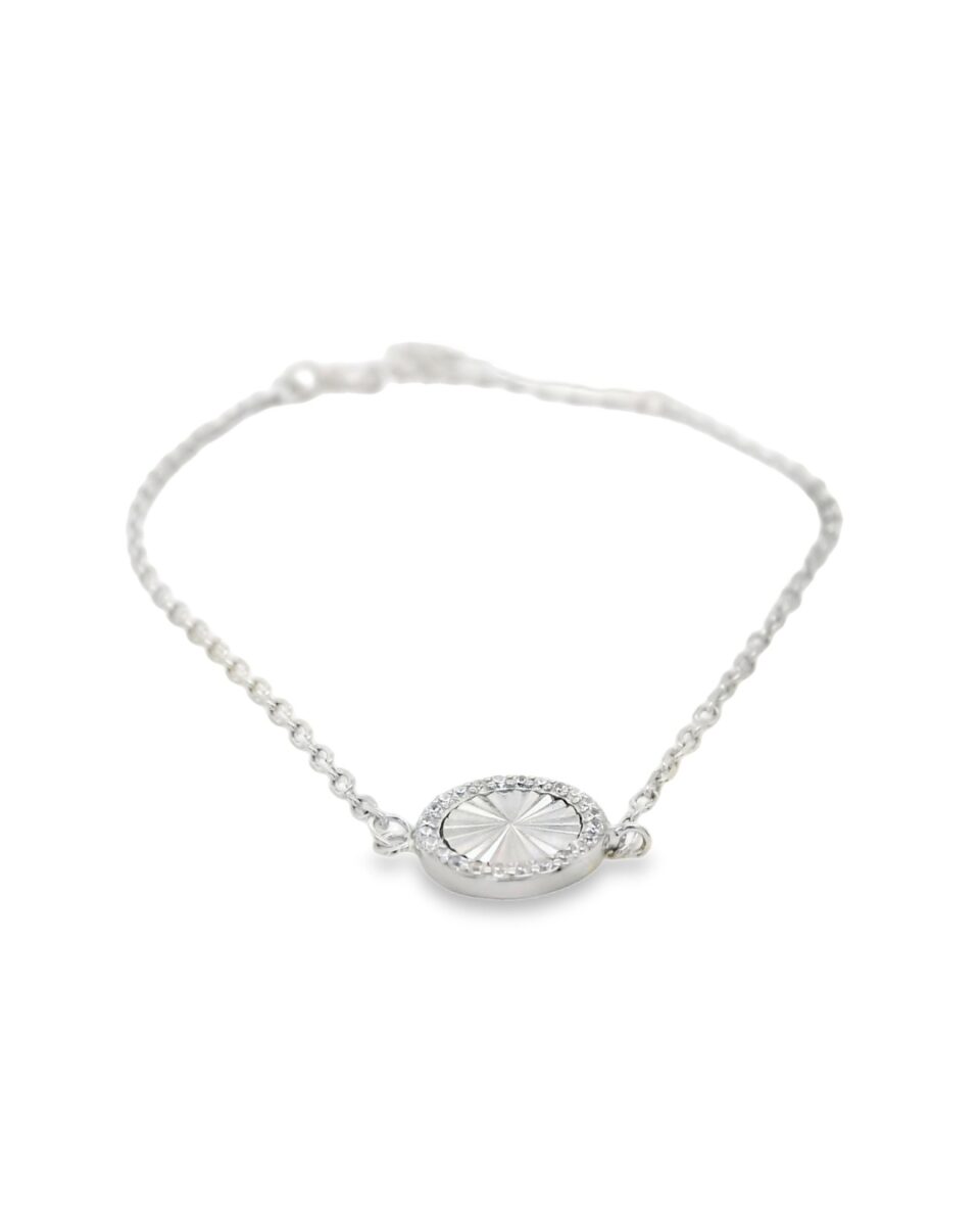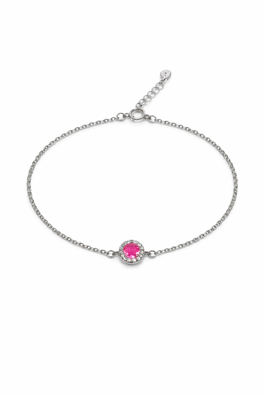Brazalete de plata italiana 925 tipo cadena, diseñado para resaltar la delicadeza y el estilo sutil. Su estructura fina y ligera se complementa con un delicado circón rosado en el centro, que aporta un toque de color suave y un brillo femenino.