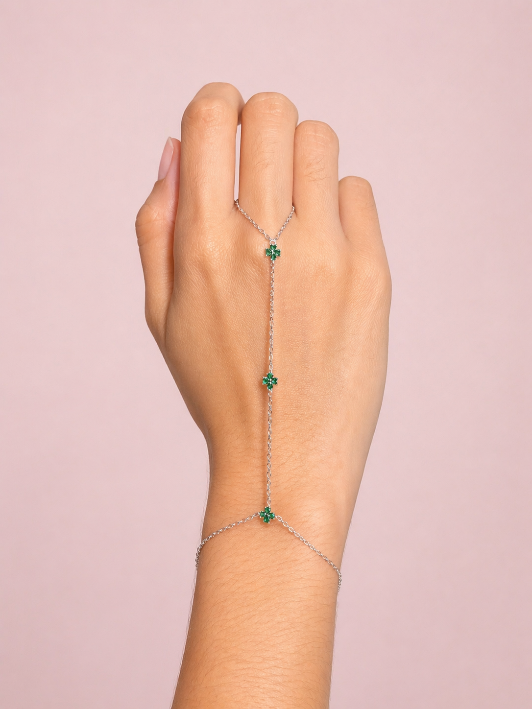 EMERALD CLOVER HAND CHAIN