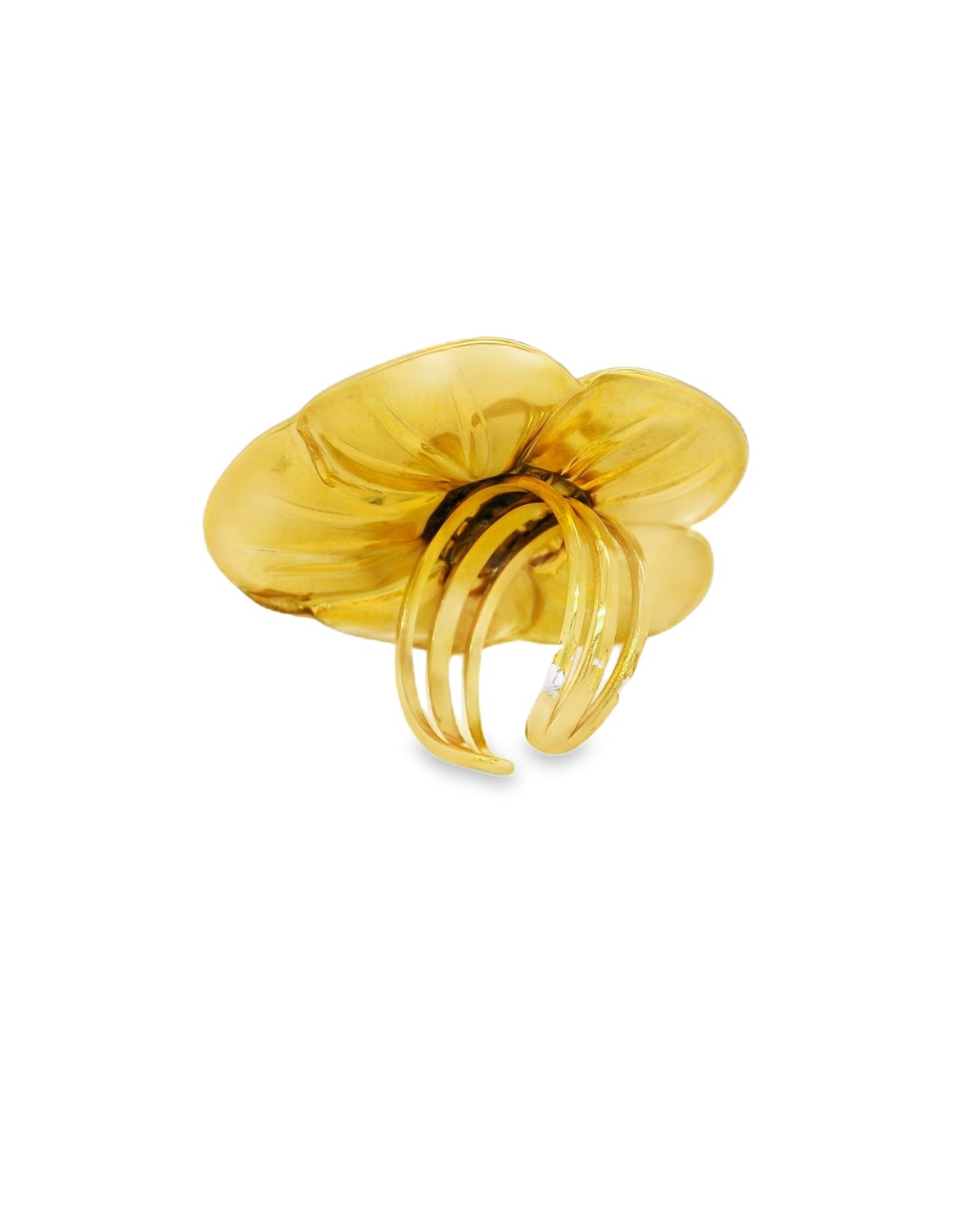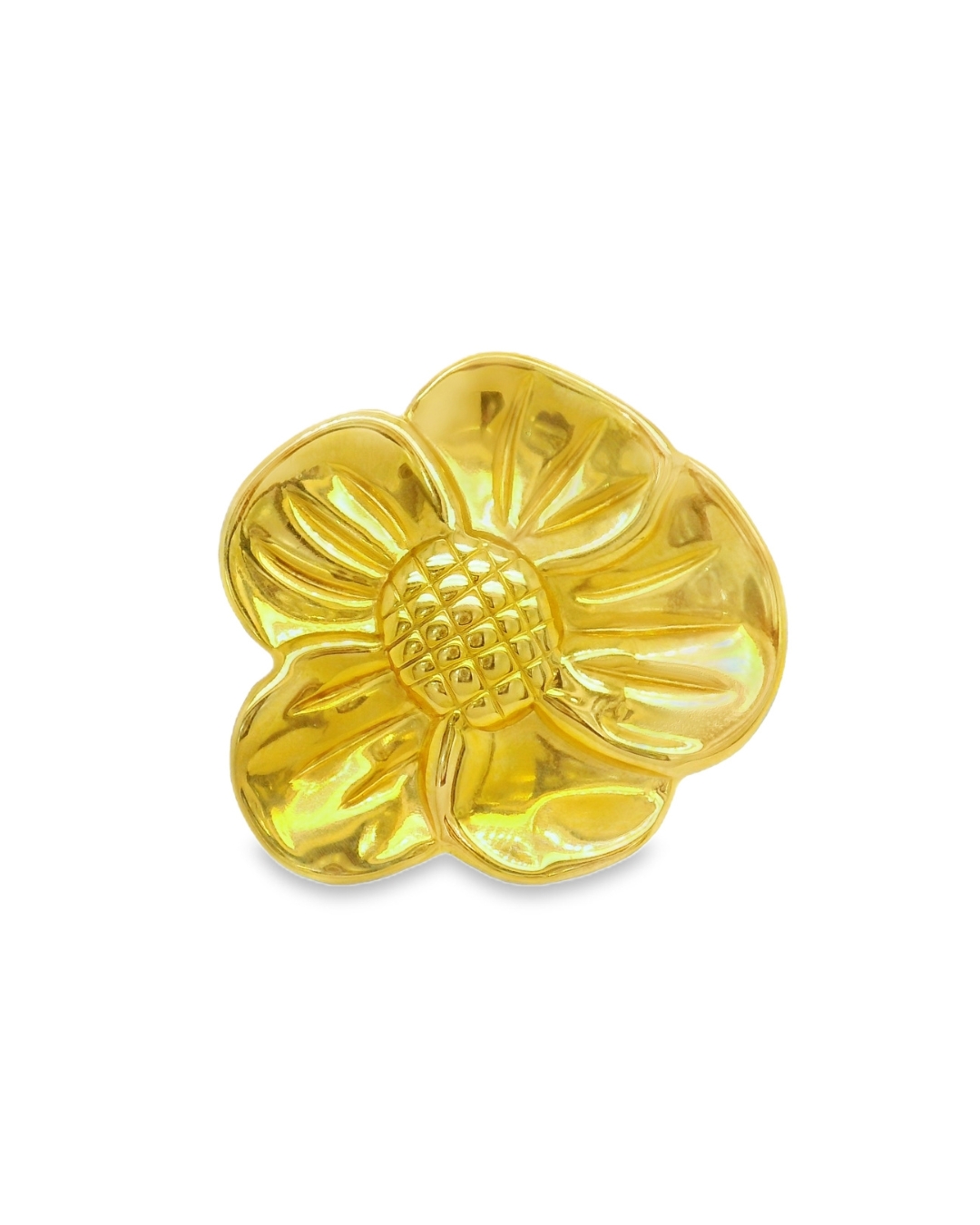 Anillo de Gold Filled en forma de flor grande. Un diseño protagonista que resalta la belleza floral con un acabado luminoso y duradero. Estas piezas destacan por su presencia y estilo sofisticado, ideales para elevar cualquier look con un toque femenino y elegante.