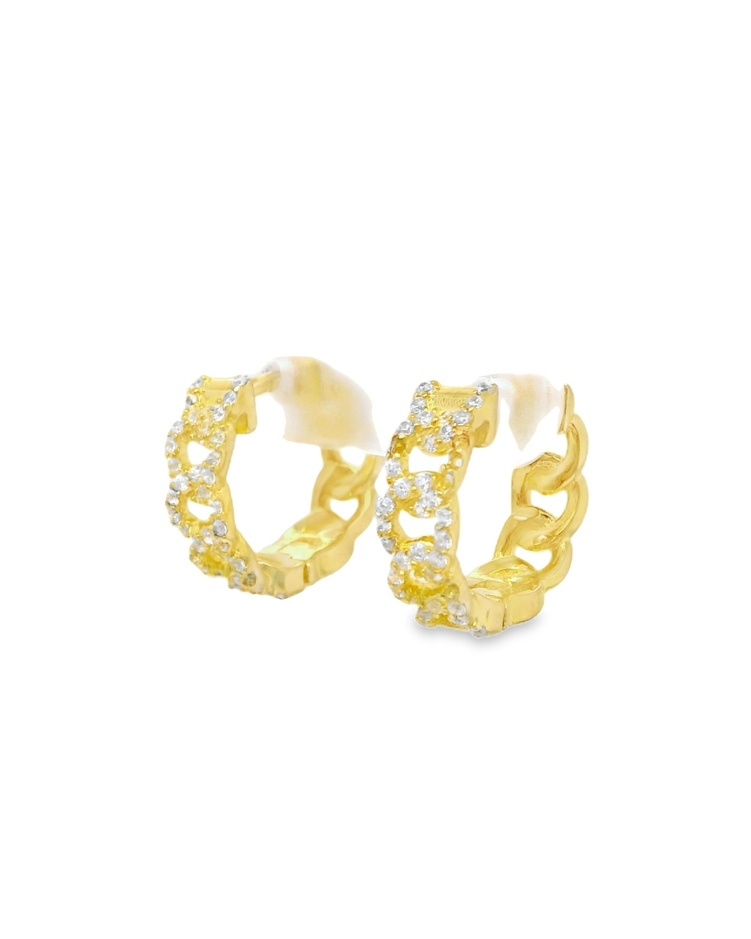 Argollas elaboradas en plata 925 con baño de oro y circones brillantes.Un diseño moderno y sofisticado que combina la fuerza de la estructura tipo cadena con el brillo sutil de los circones, creando un accesorio versátil que realza cualquier look, desde casual hasta ocasiones especiales.