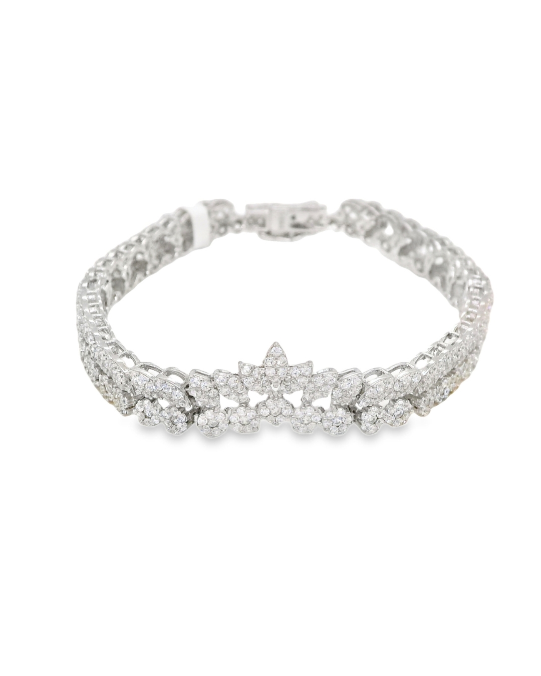 Brazalete tipo tennis estilo marquise en plata 925, diseñado para robar miradas. Cada eslabón está delicadamente engastado con circones, que aportan un brillo intenso y sofisticado desde cualquier ángulo. Su estructura ofrece presencia y lujo.