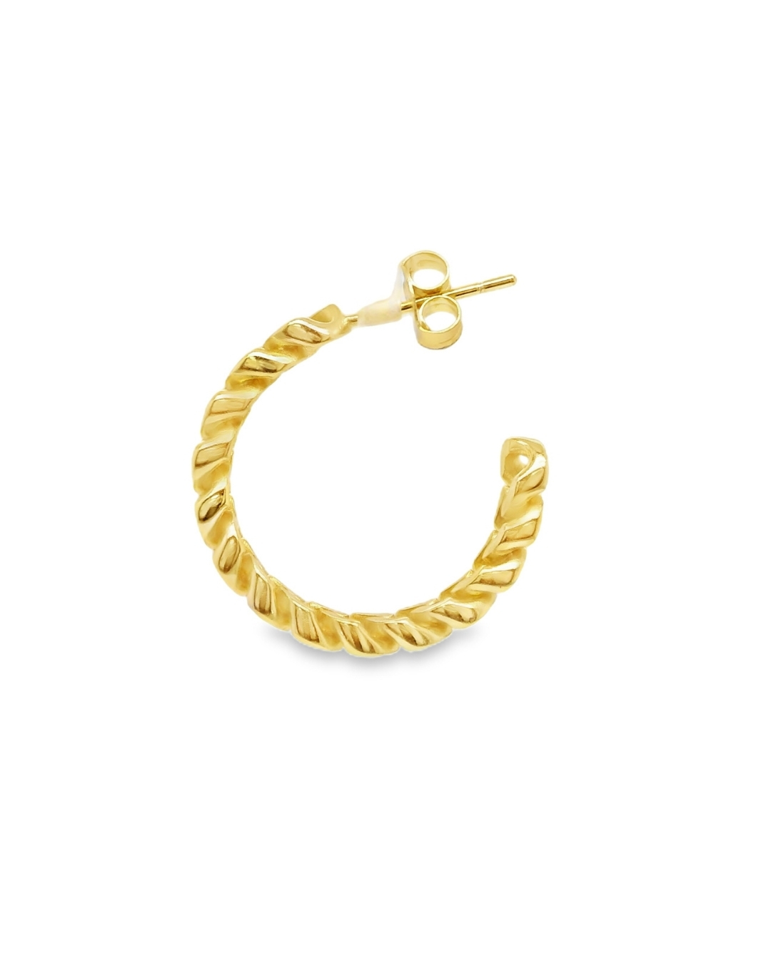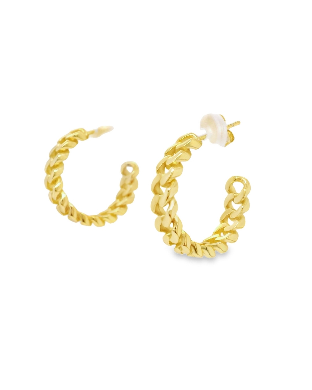 Aretes Linked Elegance, inspirados en una cadena delgada trenzada, elaborados en plata 925 con baño de oro. Su diseño ligero y sofisticado aporta un toque moderno y elegante a cualquier look, perfecto tanto para el día a día como para ocasiones especiales.