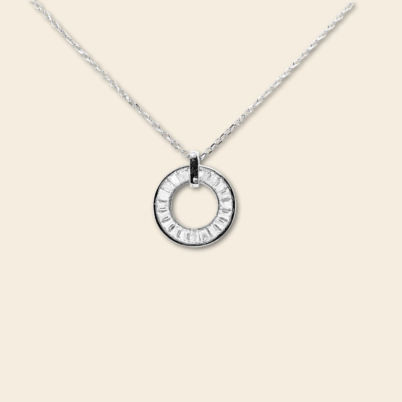 Un destello que ilumina con sutileza. El Luna Halo Set incluye collar y aretes en tono plata, con un diseño circular clásico realzado por destellos brillantes en el centro. Perfecto para elevar cualquier look con un toque de luz y elegancia atemporal. Ideal para ocasiones especiales o para darle brillo a tu día a día.