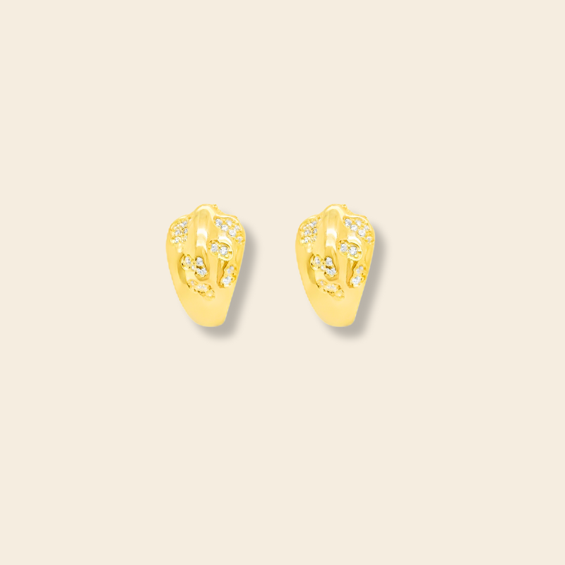 Aretes en plata italiana 925 con baño de oro , diseño delicado que refleja la sutileza de la luna. Perfectos para elevar un look elegante.