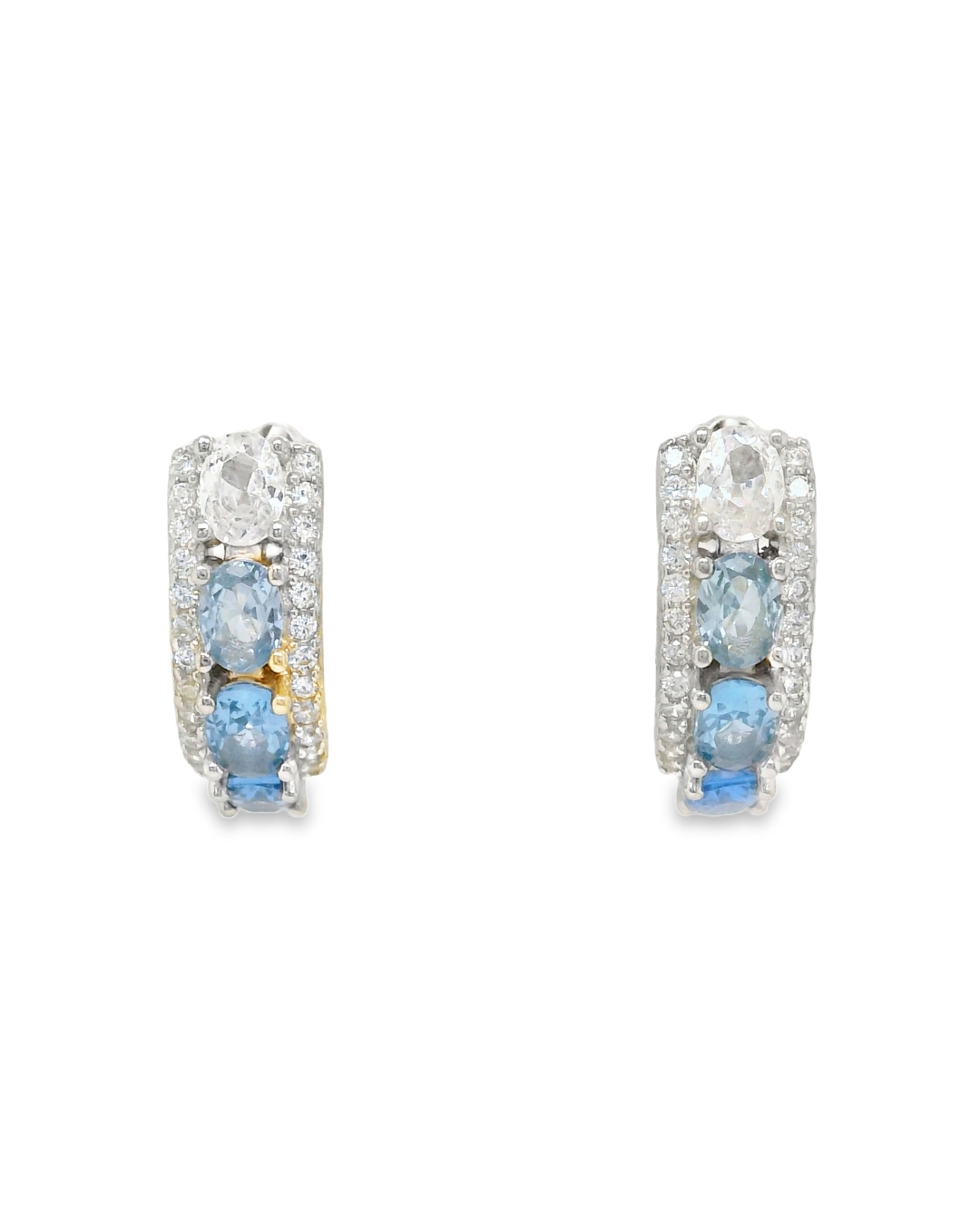 Aretes tipo hoops en plata 925. Un delicado degradado de circones azules se combina con pequeños circones blancos, creando un brillo sutil y elegante. Perfectos para cualquier ocasión, aportan un toque de luz y sofisticación a tu look.