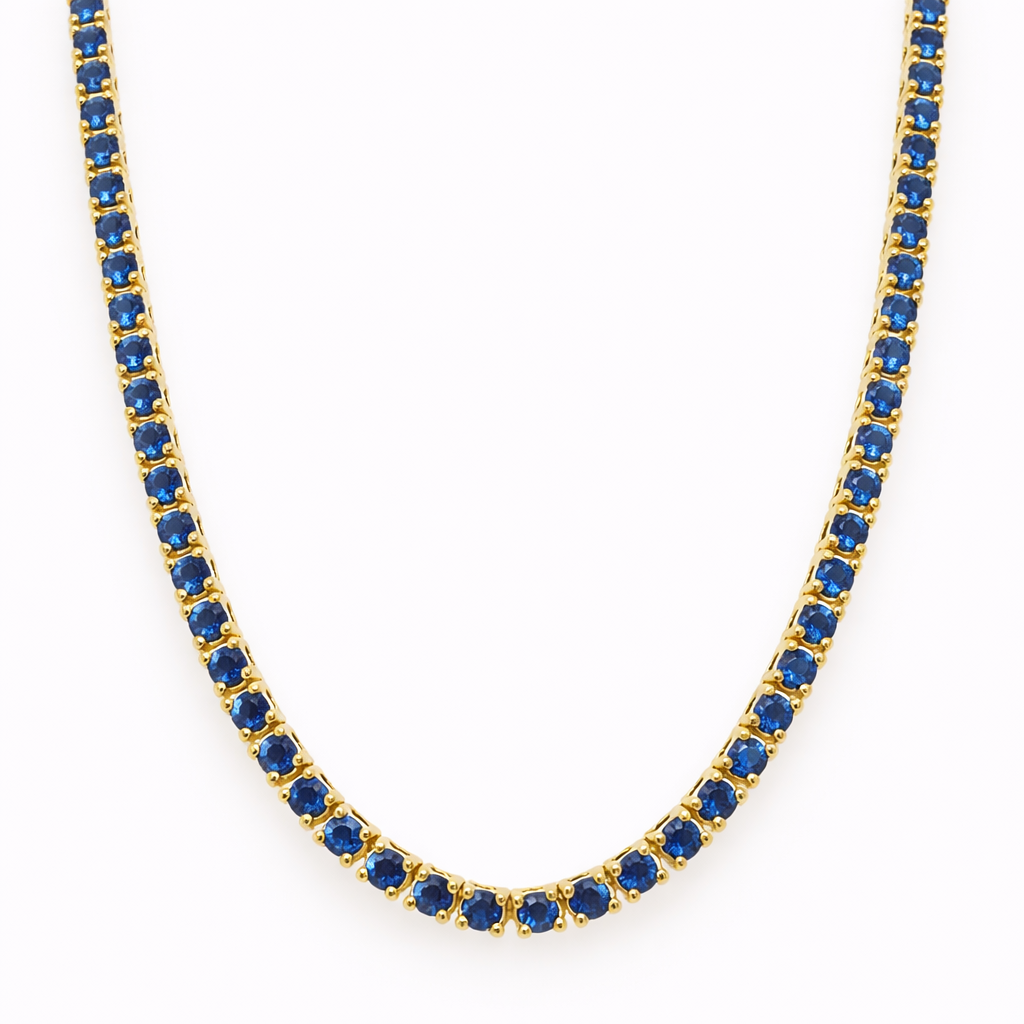 Magnético y vibrante, Solar Sapphire fusiona la profundidad de los zircones azul intenso con la calidez del baño de oro sobre plata italiana 925. El contraste entre el dorado radiante y el azul profundo crea una pieza audaz, sofisticada y llena de carácter. Cada piedra captura la luz con intensidad, evocando cielos infinitos bañados por el sol. Es lujo moderno con alma celestial.