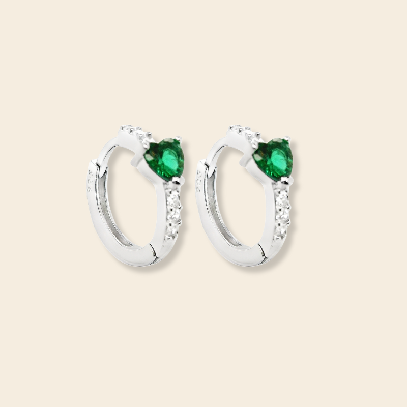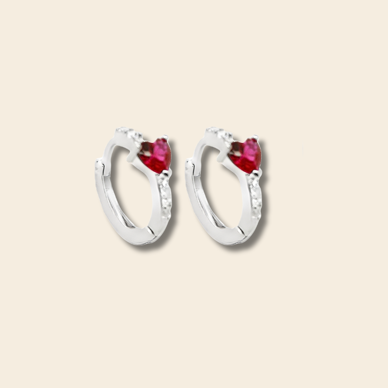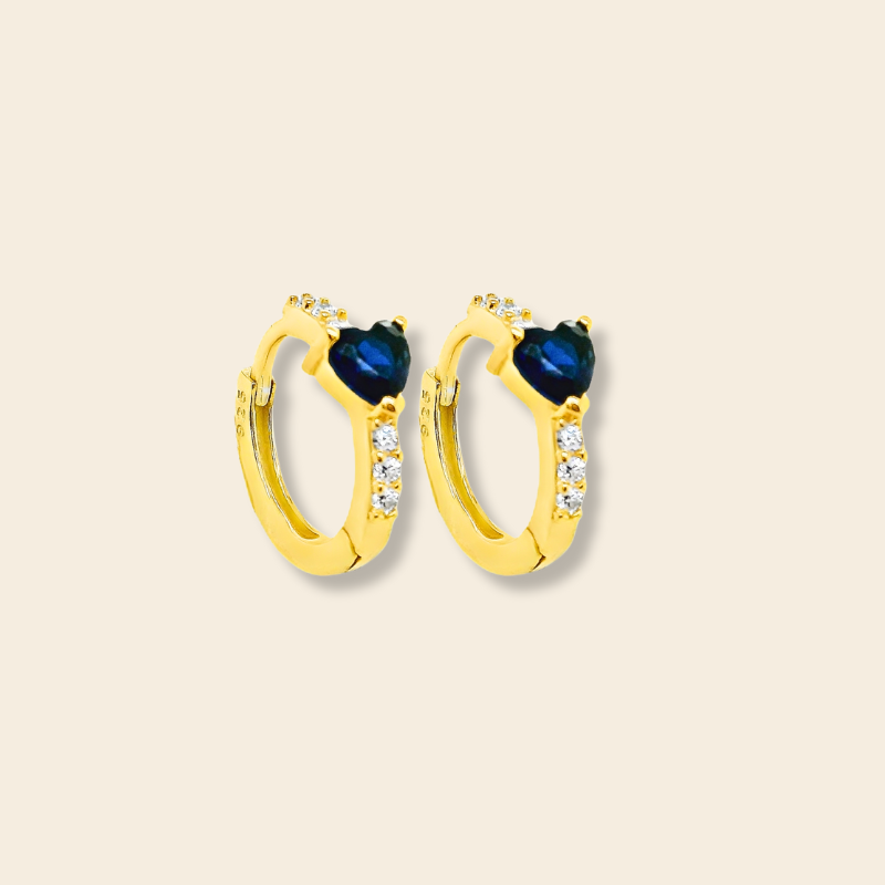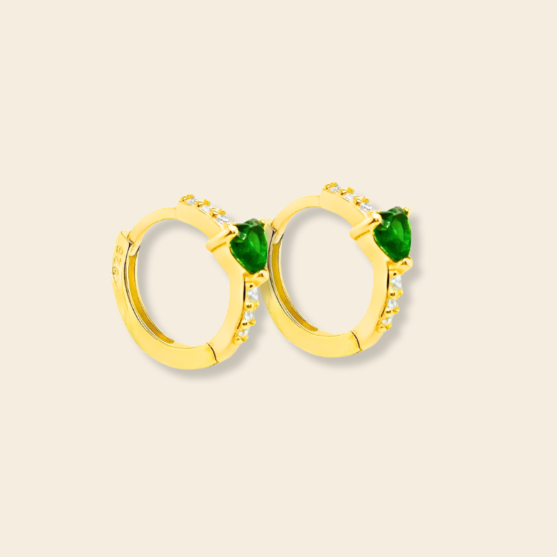 Aretes tipo huggies elaborados en plata 925 con baño en oro de 18k, decorados con un delicado dije de corazón y circones brillantes que aportan un toque romántico y elegante. Perfectos para llevar solos o en combinación con otros pendientes.