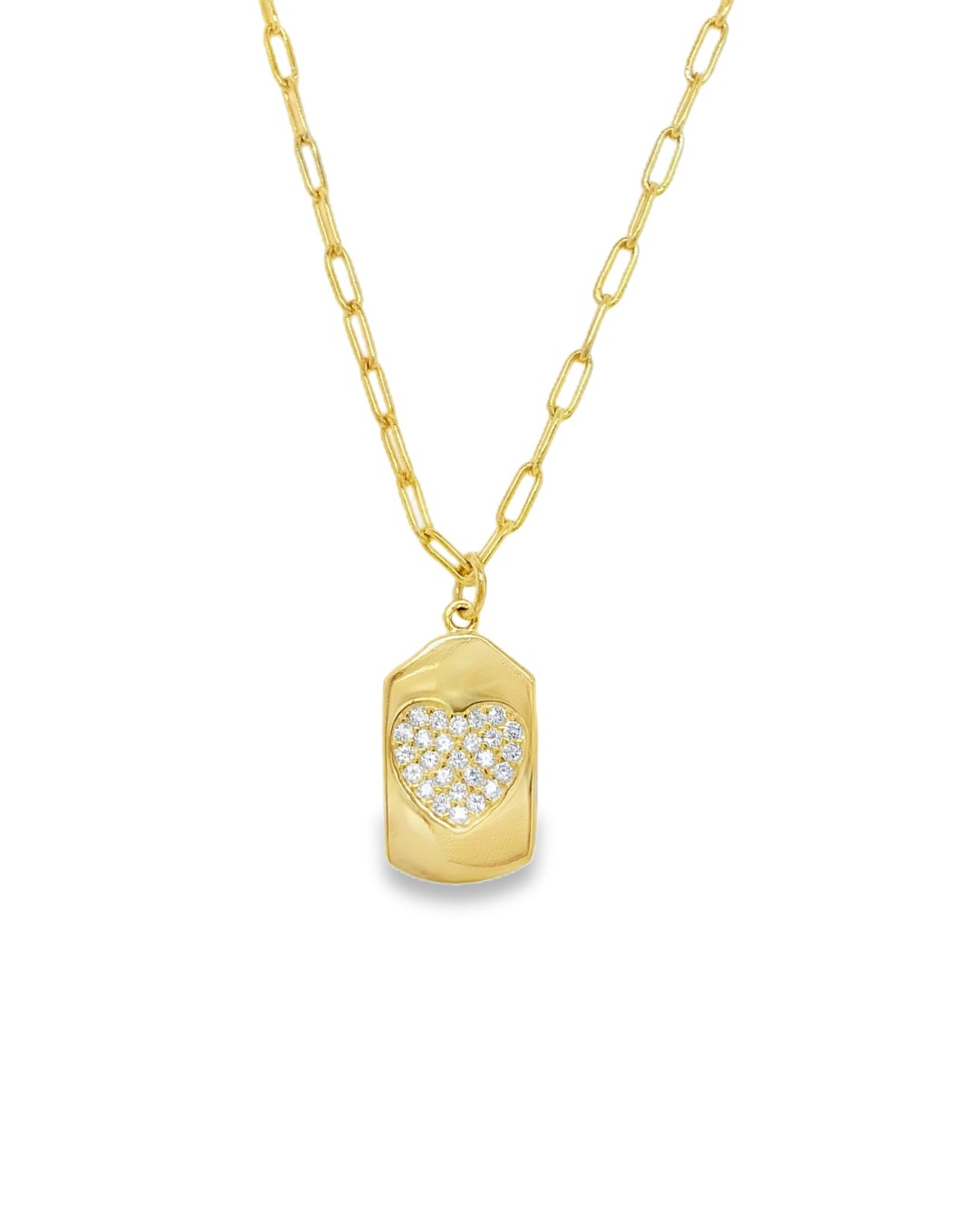 Collar en plata 925 con delicada cadena de eslabones pequeños y dije tipo placa con un corazón de circones, que aporta un brillo sutil y sofisticado. Versátil y atemporal, perfecto para usar solo o en layering, ideal para complementar cualquier look