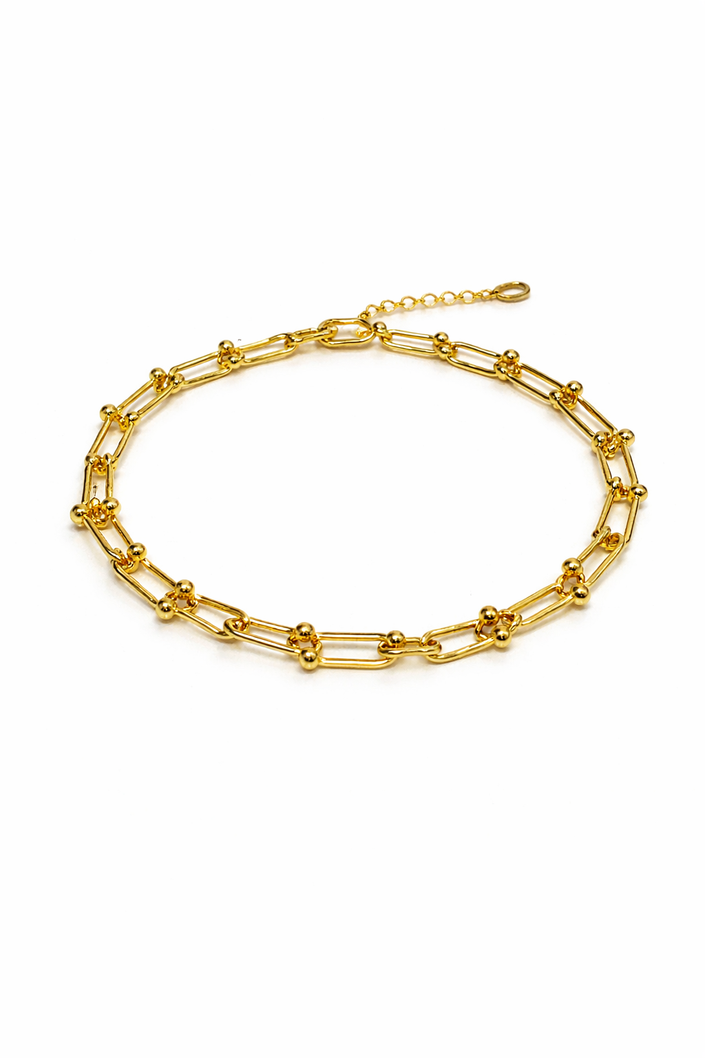 Este brazalete está elaborado en plata italiana 925 de alta calidad y realzado con un elegante baño de oro que le aporta un brillo sofisticado. Su diseño de eslabones definidos combina modernidad y atemporalidad, convirtiéndolo en una pieza versátil que realza cualquier estilo con un toque de distinción.